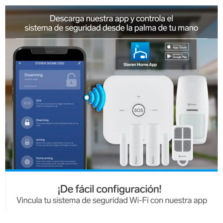 Con este Sistema de seguridad Wi-Fi* con alarma, tendrás tranquilidad conociendo cualquier intrusión que suceda en tu casa, desde tu celular, en donde quiera que estés.